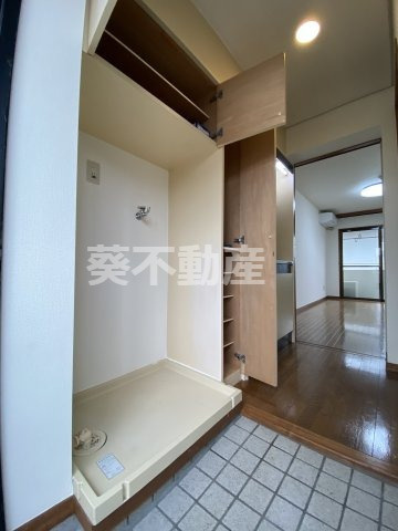 洗濯機置場の上にも収納があります 隣がシューズボックスです